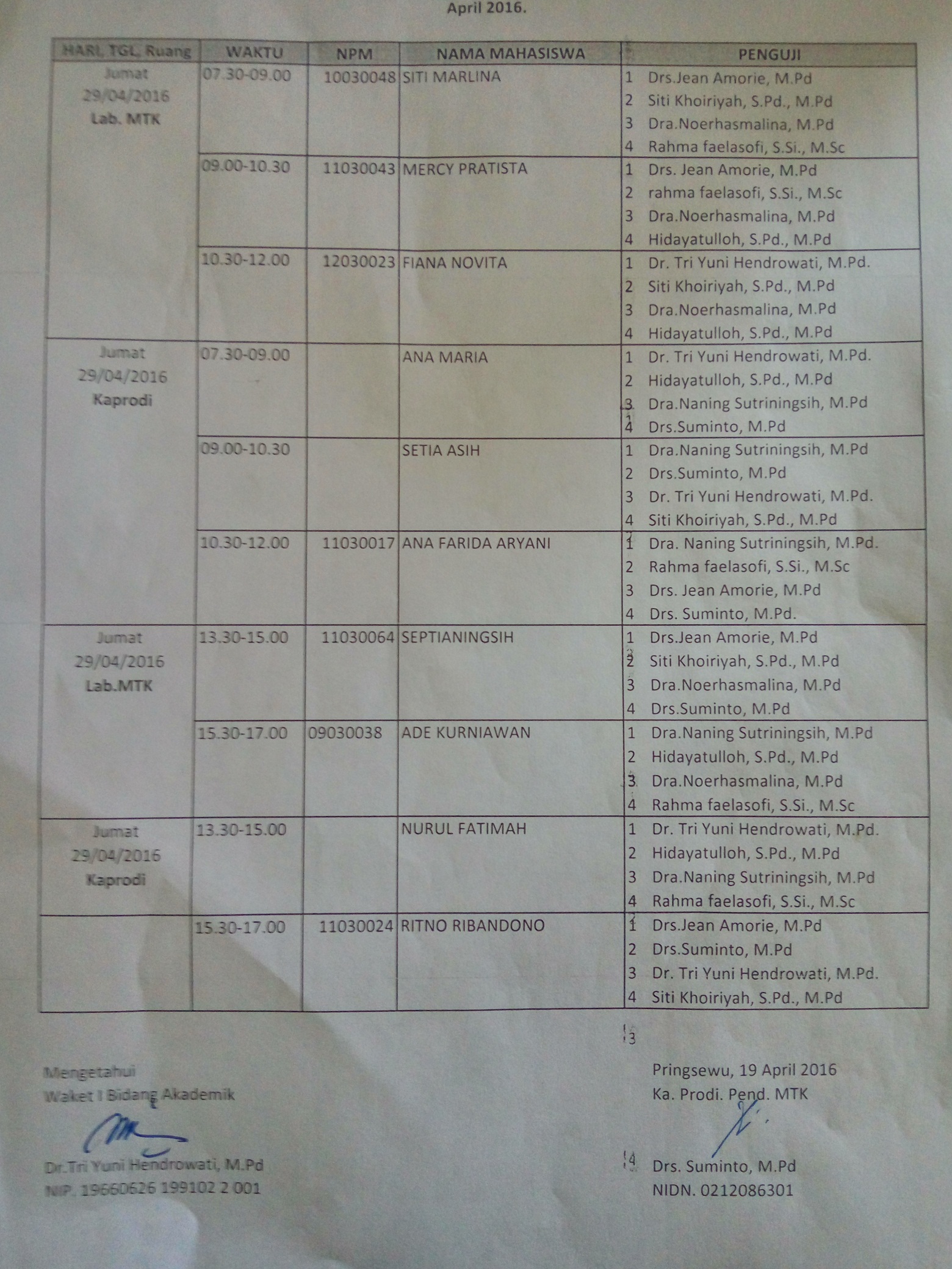 April 2017 Monitoring dan evaluasi